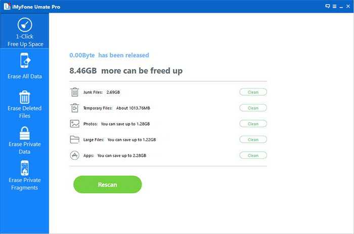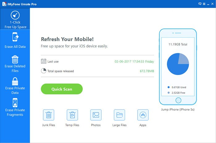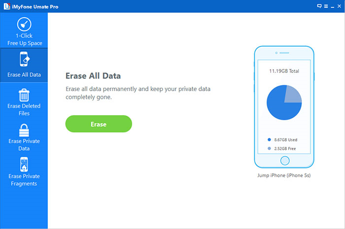 iMyFone Umate Pro by mělo být profesionálním nástrojem, díky kterému budete schopni z paměti svého zařízení odstranit všechna data a to do takové míry, že nebudou zpětně obnovitelná a to i v případě, kdy potenciální útočník využije moderních obnovovacích řešení. Tento program se kromě vymazání veškerých osobních dat stará také o to, abyste ve vašem zařízení neměli data, která tam nemají co dělat a zabírají zbytečný prostor.