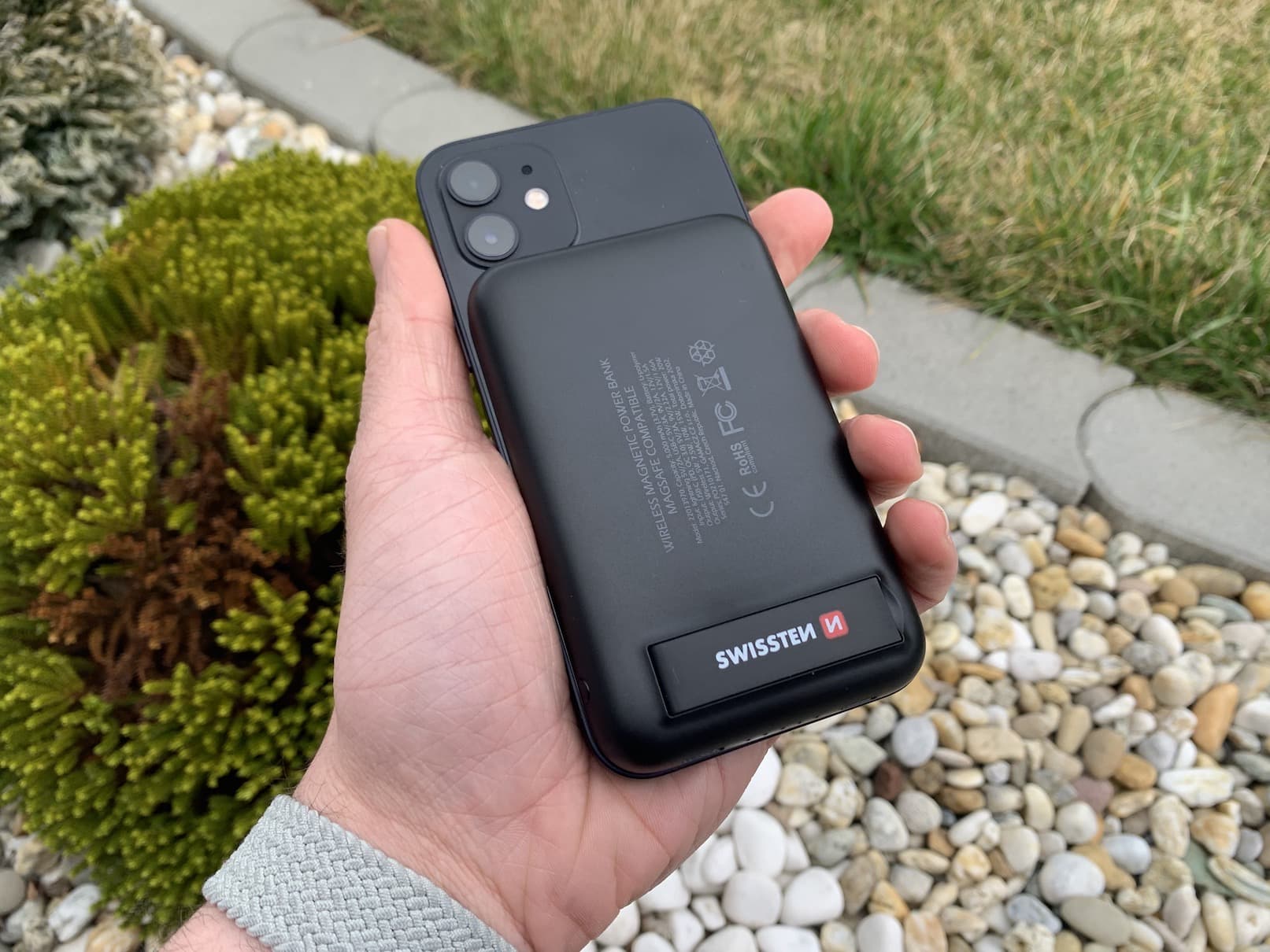Při využívání MagSafe powerbanky od Swisstenu jsem se nesetkal s žádným problémem a funguje naprosto dle očekávání. Po přicvaknutí na iPhone se na jeho displeji objeví klasická MagSafe animace, která informuje o nabíjení, stejně jako u MagSafe baterie. Nutno ale zmínit, že MagSafe powerbanku Swissten můžete využít i pro klasické Qi bezdrátové nabíjení, a to například starších iPhonů či AirPods – nejste limitováni na MagSafe. Zároveň lze využít i USB-C konektor pro klasické drátové nabíjení, konkrétně třeba pro 20W rychlonabíjení Power Delivery, kterým nabijete novější iPhony z 0 % na 50 % nabití za pouhých 30 minut. MagSafe bezdrátové nabíjení pak probíhá při 15 W a do 50 % jste schopni iPhone pomocí něj nabít za zhruba hodinu, kompletní nabití do 100 % pak potrvá zhruba 2,5 hodiny. Kromě jednoduchého designu se mi u MagSafe powerbanky Swissten líbí také vyklápěcí nožička, která se může hodit, zároveň musím pochválit tak přítomnost otvoru pro poutko. Za dobu používání jsem se Swissten MagSafe powerbankou opravdu neměl žádný problém.