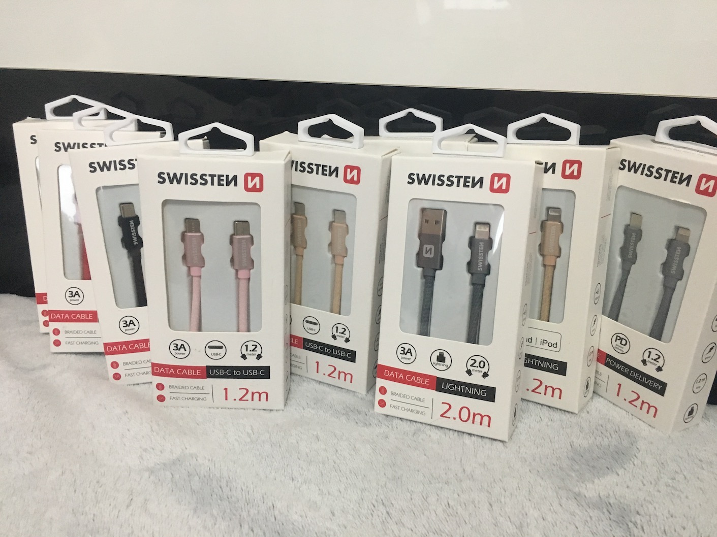 Jak už jsem nastínil v úvodu, kabely, které Swissten vyrábí, jsou opravdu robustní. Zvládnou přenést proud až 3 A a zvládnou se bez jakékoliv známky poškození ohnout až 10 tisíckrát. Velkou výhodou je také skutečnost, že Swissten nabízí své kabely ve třech různých délkách. Nejkratší kabel má 20 cm a hodí se například k powerbance. Střední velikost, která je svým způsobem univerzální, je dlouhá 1,2 m. Tento kabel využijete prakticky úplně všude, jak v autě, tak například k nočnímu stolku na nabíjení. Nejdelší kabel má délku 2 m a hodí se třeba do postele, kdy chcete mít jistotu, že kabel dosáhne úplně všude a vy nebudete nuceni telefon zbytečně odpojovat. Z nabídky si také můžete vybrat kabely s certifikací MFi (Made for iPhone), která zaručuje, že kabel nepřestane s příchodem nového iOS fungovat. Samozřejmě nesmím zapomenout na jednu z největších dominant těchto kabelů, a to je široká škála barev, ve které jsou dostupné. Můžete si vybrat z černé, šedé, stříbrné, zlaté, červené, růžovo-zlaté a nově i ze zelené a modré.