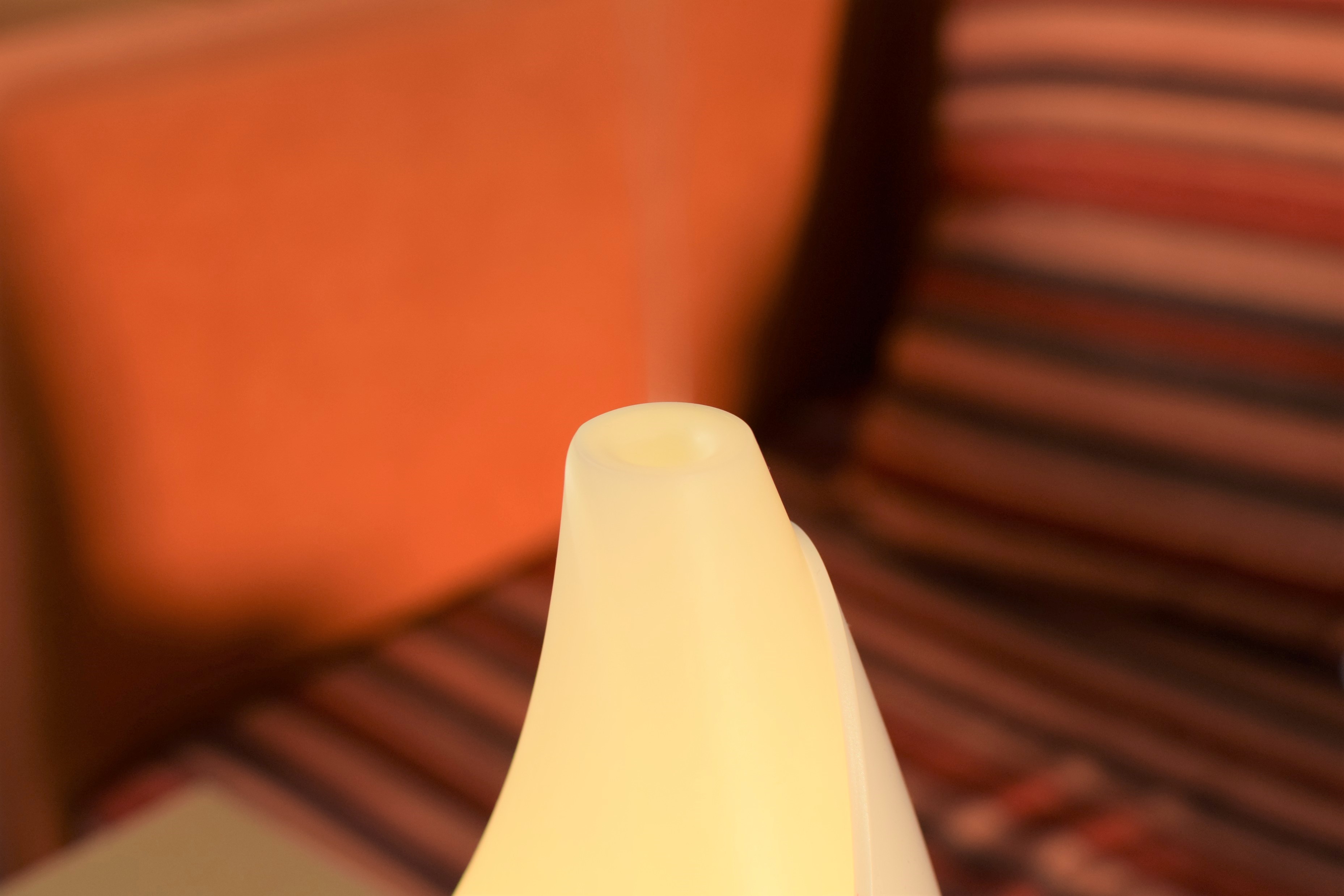 Zapomenout nesmíme ani na zpracování jako takové. Celý produkt je vyroben z plastu, který působí na omak vcelku kvalitně, ale hlavně relativně hodnotně. Osobně bych se tedy nebál difuzér vystavit například v luxusnějším obýváku, jelikož jeho celkový design určitě nezkazí. Jeho rozměry jsou 27 cm na výšku a 17 cm na šířku v nejširším místě. V nejužším místě, které se nachází přímo na vrcholu druhá části difuzéru nebo chcete-li “komínku” má pak 2,5 cm. Rozhodně se tady tedy nebavím o velkém zařízení – ba naopak. Difuzér vám nemusí jen provonět či osvěžit místnost, ale zvládne jí i prosvětlit díky integrovaným LED čipům, které zvládají zobrazit až 16 milionů barev. Věřím tedy, že tu svou si bez větších problémů vyberete.