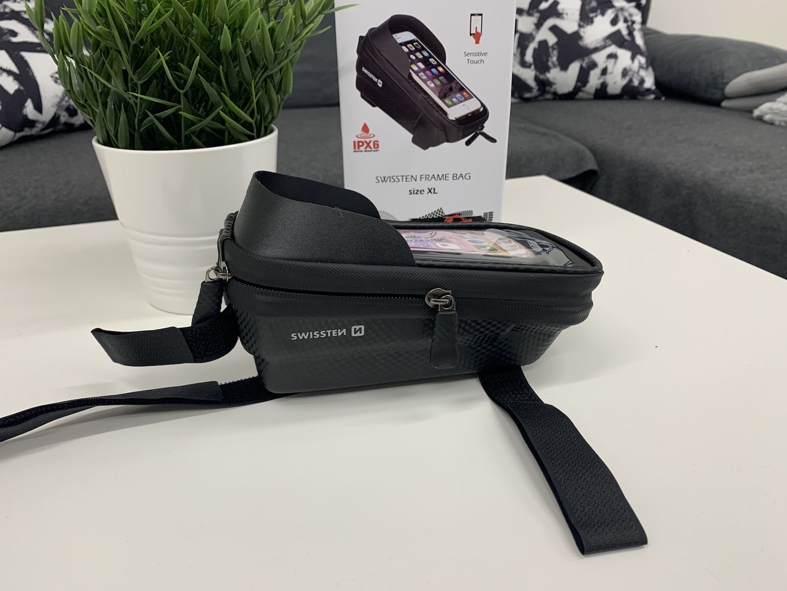 Voděodolné pouzdro na kolo od společnosti Swissten nabízí také bezpečné uchycení. Konkrétně se pouzdro uchycuje na vaše kolo pomocí třech velmi pevných suchých zipů. Dva suché zipy jednoduše přichytíte na hlavní trubku vašeho kola s tím, že třetí suchý zip se připne na představec řídítek. Tímto způsobem zajistíte, že se pouzdro při jízdě ani nehne – obavy z toho, že byste ho mohli někde nechat či vytratit tak mohou jít kompletně stranou.