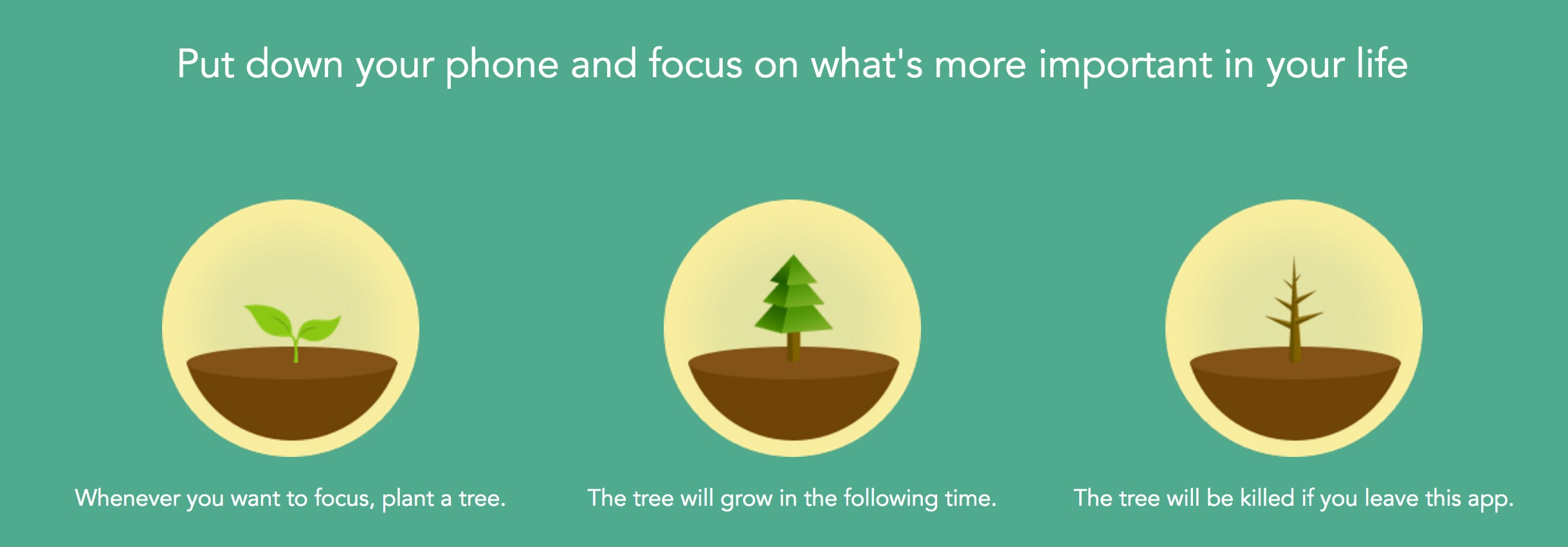 Forest patří mezi aplikace zaměřené na zvýšení vaší produktivity a soustředění. Představte si, že čtete knihu a nechcete být rušeni otravnými notifikacemi, nebo jste na rande a chcete se naplno věnovat svému protějšku. Aplikace je také jako stvořená pro studenty či kreativní lidi, kteří se chtějí oprostit od svého iPhonu či iPadu.