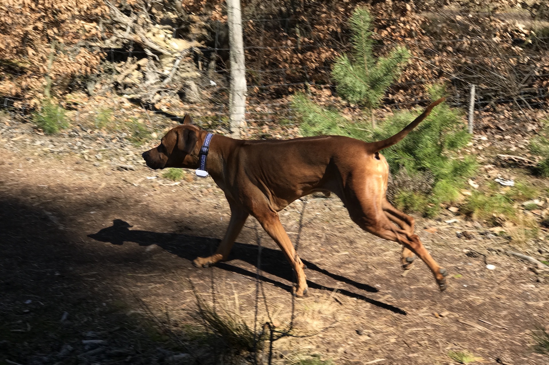 Rodiče mají doma psa. Velké plemeno rhodéského ridgebacka – Huga. Ač je pes obvykle poslušný, nelze zabránit tomu, že během delších procházek lesem zachytí stopu srnky či zajíce a na nějaký čas zmizí. V takový moment jsou veškerá přivolání a pamlsky zcela zbytečné. Hugo zkrátka vezme roha a pořádně se proběhne. Páníčkům pak nezbývá nic jiného než čekat, až se Hugo vrátí.