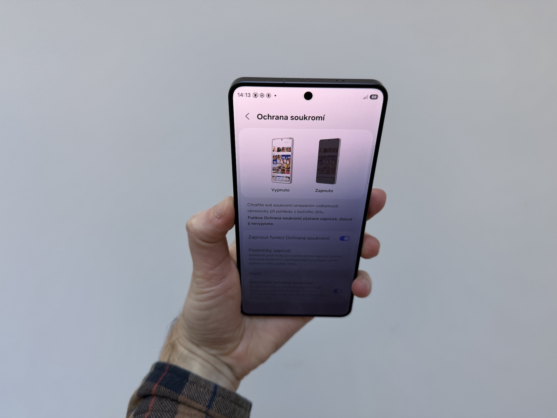 Čelní stranu Ultra modelu vyplňuje 6,9″ Dynamic AMOLED 2X displej s QHD+ rozlišením a adaptivní 1–120Hz obnovovací frekvencí. Nechybí podpora S Pen, ochranné sklo Gorilla Armor 2 ani titanové prvky konstrukce. Samsung zároveň zdůrazňuje využití recyklovaných materiálů včetně lithia a tantalu. Zajímavou novinkou je takzvaný Privacy Display, který omezuje pozorovací úhly a má zabránit nechtěným pohledům přes rameno.