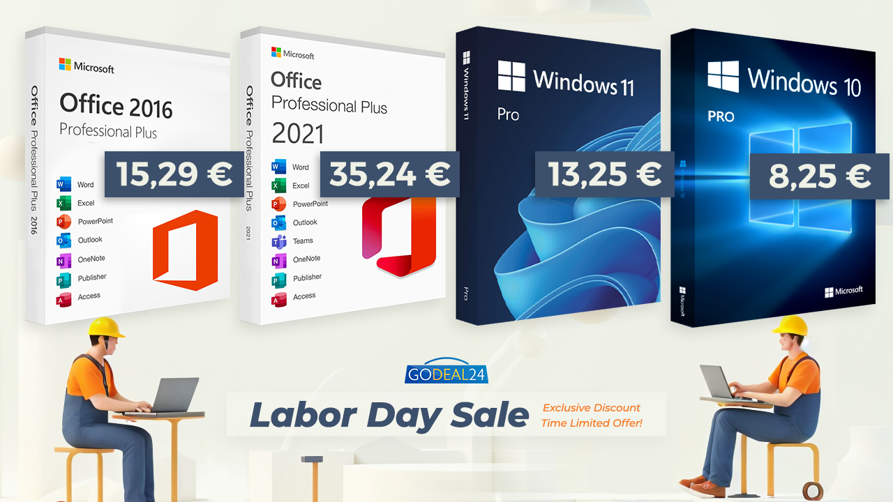 Komerční sdělení: Šťastný Svátek práce! Ať už máte to štěstí, že máte na oslavu volno, nebo musíte jít do kanceláře, určitě si nenechte ujít dnešní poklesy cen. Takhle výhodné nabídky produktů Microsoft se nevidí každý den. Vaše licence Microsoft právě zlevnily o 90 %. Rychlý a výkonný kancelářský balík Office a operační systém Windows můžete právě teď získat s výraznou slevou ve výprodeji Godeal24 Labor Day Sale. Zjednodušte si pracovní rutinu, která vás čeká v rušné letní sezóně.