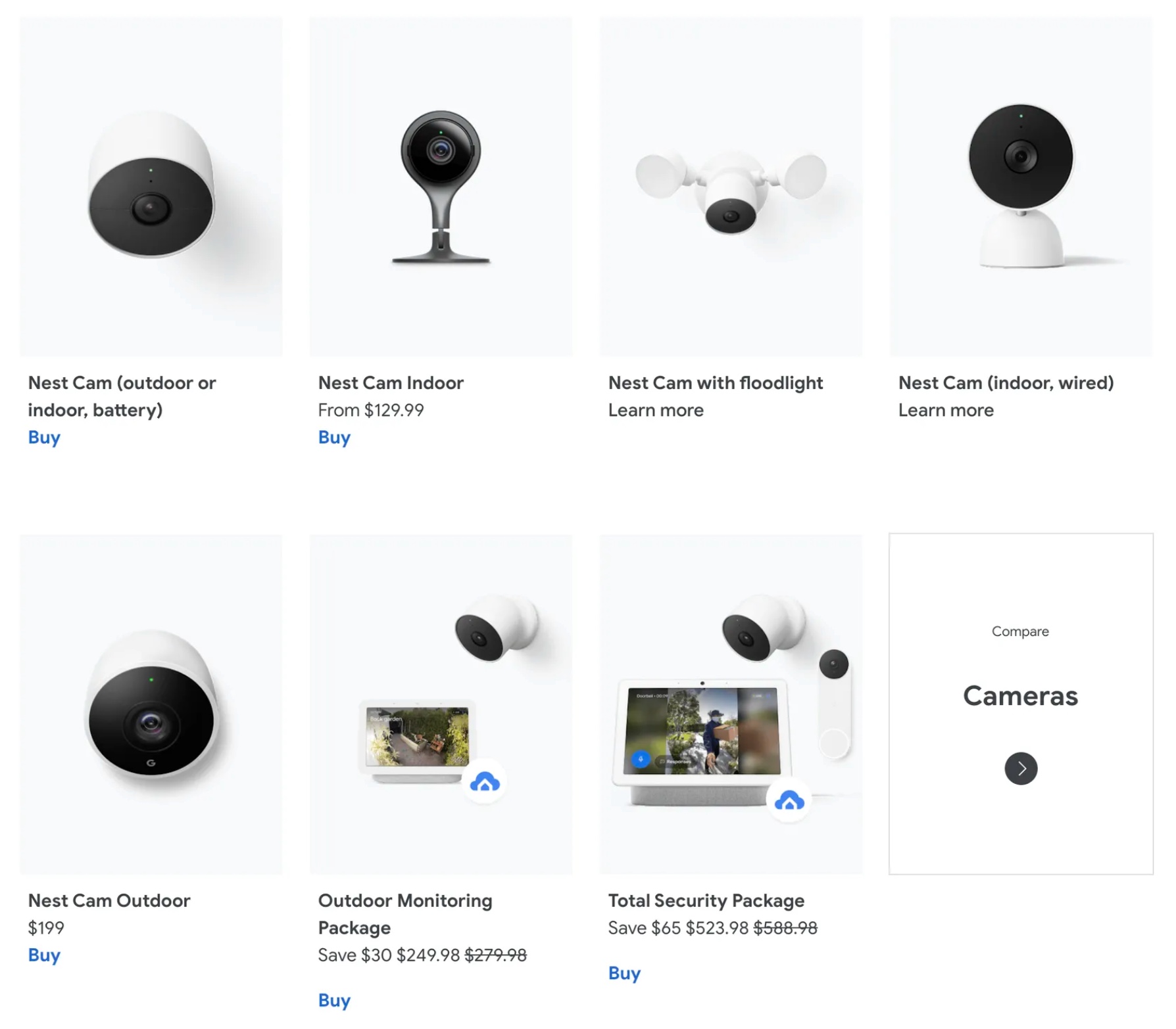 Kamery již pochopitelně mezitím stihly z nabídky e-shopu společnosti Google zmizet, všímaví svědci ale stihli zaznamenat, že se bude jednat o kombinované vnitřní i venkovní kamery Nest Cam, které budou poháněné baterií, o kameru Nest Cam s osvětlením, interiérovou kameru Nest Cam se zapojením do elektrické sítě a zvonek Nest Doorbell na baterii. Není to poprvé, co se Googlu takovýmto způsobem podařilo nechtěně prozradit, jaké produkty se chystá vydat. V případě zařízení Nest Hub Max došlo k jeho neplánovanému prozrazení jen několik týdnů před tím, než bylo oficiálně představeno. Zmíněné bezpečnostní kamery a další zařízení vypadají jako užitečné a zajímavé doplnění dostavadního sortimentu od Googlu. Firma jejich výskyt na svých stránkách zatím nijak oficiálně nekomentovala.