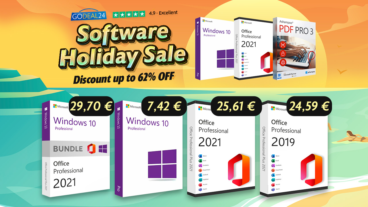 Godeal24 je profesionálním prodejcem s rozsáhlou nabídkou, který prodává 100% legální digitální licence. Přijít si tak můžete na ten samý software s více než 80% slevou, ale i přesto získat oficiální produkt. Mimo populárního systému Windows či balíčku Office si můžete přijít i na praktické počítačové a mobilní nástroje, jako IOBIT, Ashampoo, Disk Drill a další.
