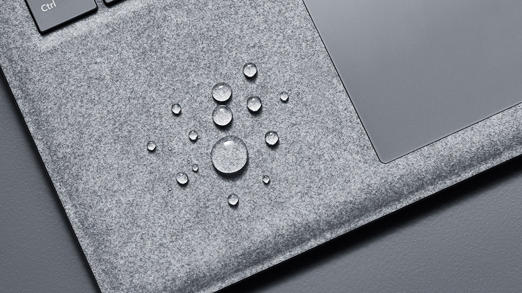 Tělo Surface Laptopu je z jednoho kusu hliníku, bez jakýchkoliv šroubků a otvorů, ale co ho odlišuje od ostatních, je klávesnice a její povrch. Microsoft použitému materiálu říká Alcantara a jedná se o syntetickou mikrovláknovou kůži, jež je velmi odolná a využívá se v luxusních automobilech. Vedle neotřelého vzhledu to přináší i o něco teplejší zážitek při psaní.