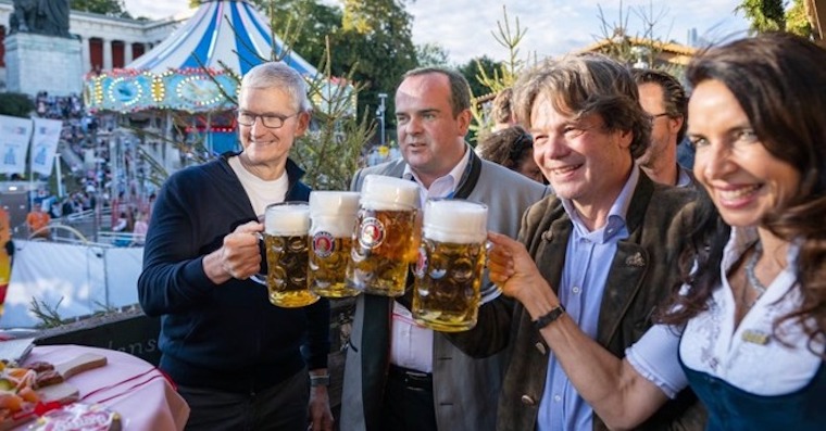 Cestování po všech koutech světa patří neodmyslitelně k pozici, kterou Tim Cook v Applu zastává. O své poznatky a zážitky z cest se Cook ochotně dělí na svém twitterovém účtu, a cesta do Německa nebyl v tomto směru výjimkou. První z tweetů vyšel již v neděli – jednalo se o fotografii, na které Cook pózuje s obří sklenicí piva při oslavách tradičního mnichovského Oktoberfestu.