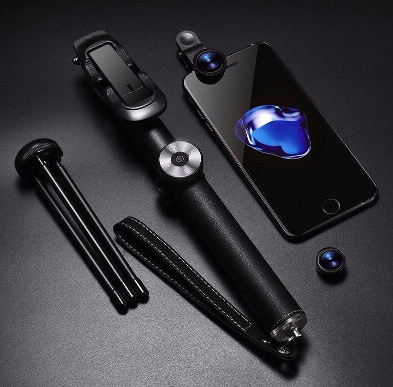 Stylová kožená selfie tyč určená pro náročné uživatele. Jedna z nejluxusnějších selfie tyčí na trhu. Tyč disponuje odnímatelným bluetooth ovladačem a je možné jí roztáhnout až do délky 95 cm. Balení také obsahuje tripod (stojánek pro fotografování), přídavné čočky pro smartphone a poutko.