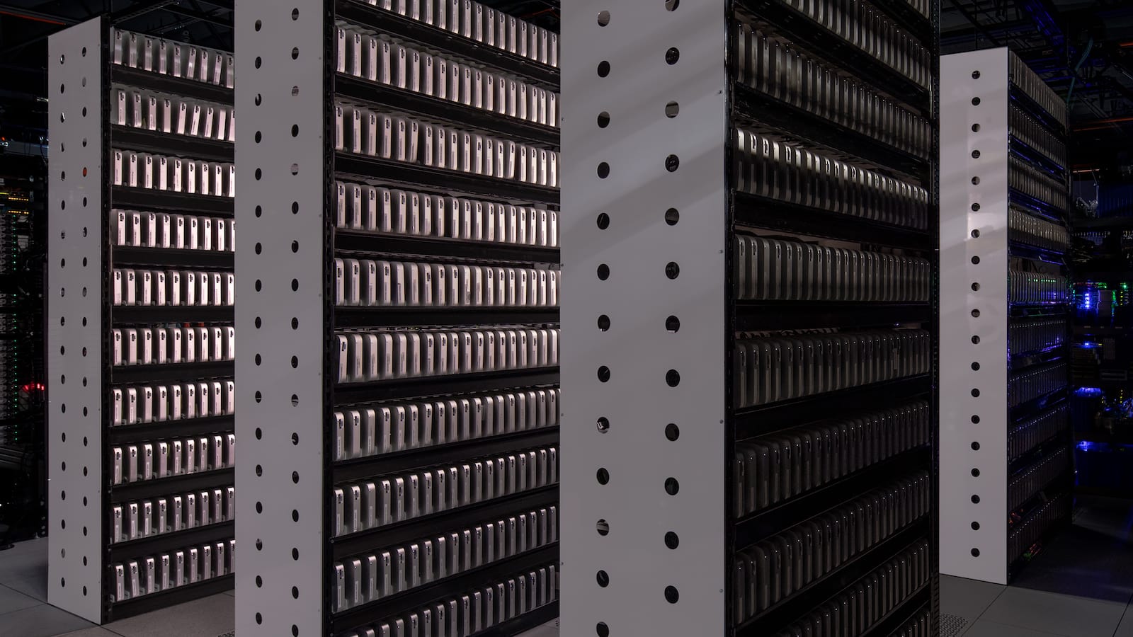 Další zajímavostí je, že téměř všechny zde přítomné Macy nedisponují (nebo nepoužívají) své vlastní vnitřní úložiště. Všechny stroje jsou napojeny na páteřní datový server, který obsahuje stovky terabytů PCI-E úložiště, které je škálovatelné dle potřeb klientů. Video jako takové je poměrně působivé, nikde na světě totiž není taková koncentrace Maců jako na tomto místě v Las Vegas.