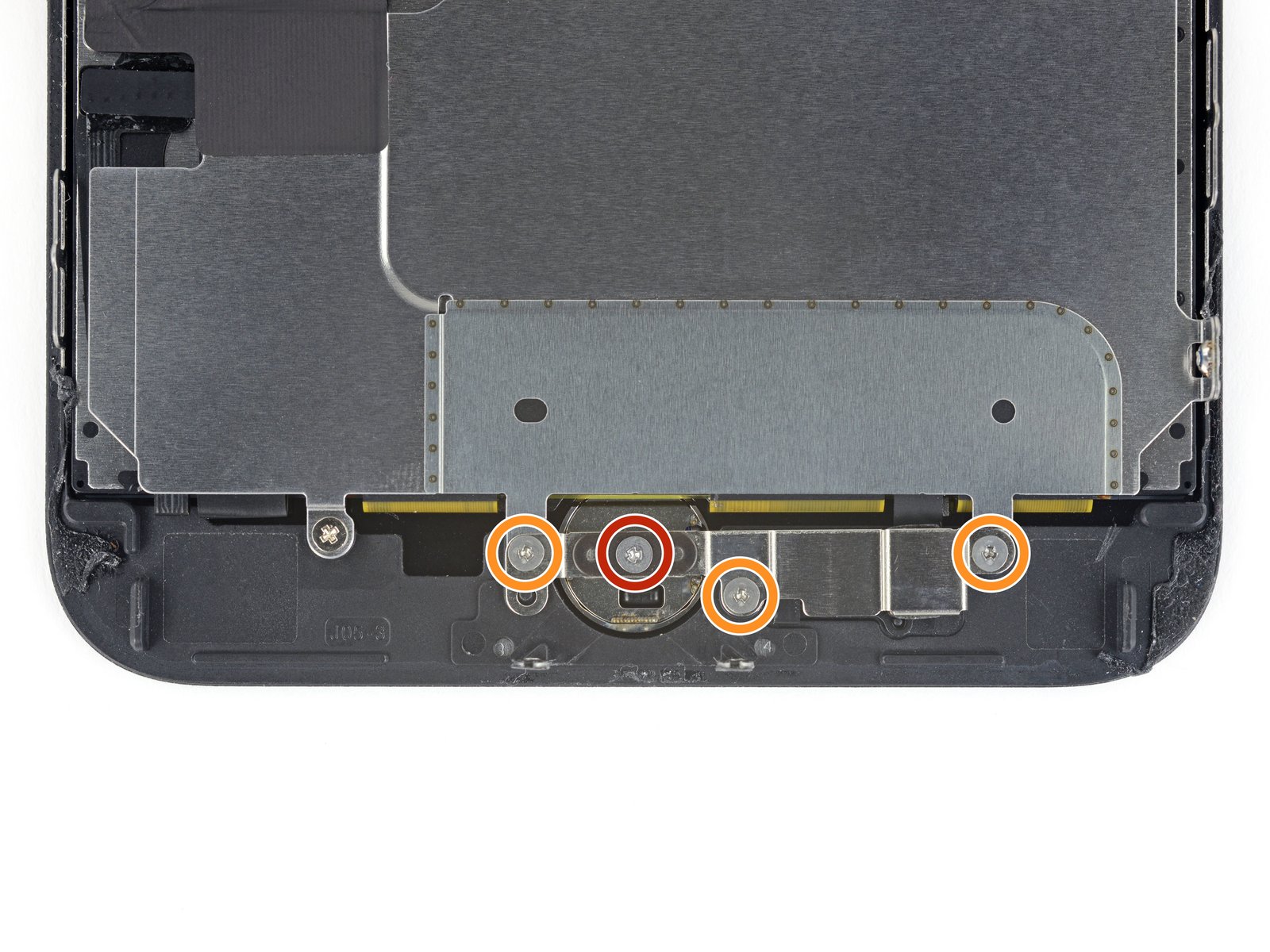 Patříte mezi jedince, kteří opravují jablečné telefony, a měnili jste například displej, popřípadě jakoukoliv jinou součástku, a Touch ID přestalo fungovat? Pokud ano, tak zkuste kovový plíšek, který z druhé strany displeje Touch ID chrání, lehce odtáhnout. Odtáhnout můžete zkusit všechny šroubky plíšku, primárně ale odtáhněte ten šroubek (červeně), který uprostřed drží Touch ID (u iPhonu 7 a novějšího). Všeobecně byste při opravování telefonů neměli využívat plnou sílu k utahování šroubků. Vzhledem k velikosti šroubků totiž existuje velká pravděpodobnost stržení závitu, popřípadě zničení hlavičky šroubku. Takže rozhodně pracujte s citem.