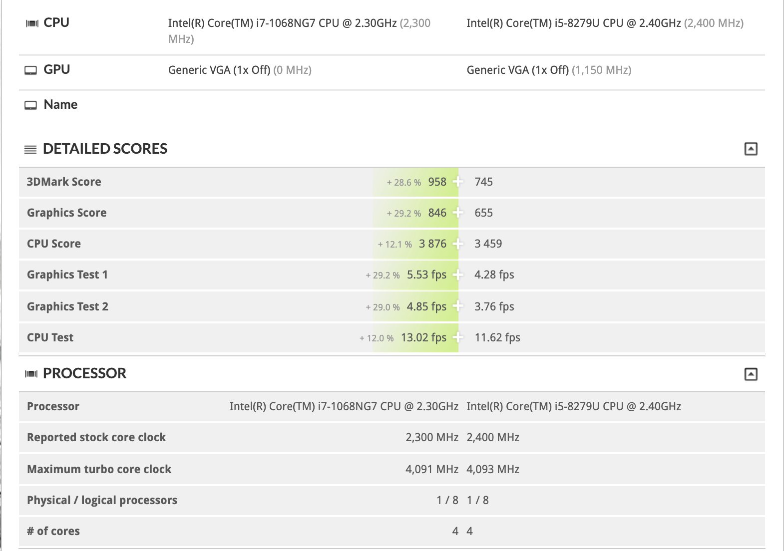 Pokud jde o čip, Intel Core i7-1068NG7 je nejlepším mobilním čipem Ice Lake série U a nabízí vestavěnou grafickou kartu Iris Plus, která je o 30% výkonnější oproti předchůdci. Čip má také spotřebu pouze 28W. Zajímavé na leaku je i to, že v benchmarku není uvedena frekvence grafického čipu, zatímco předchůdce nabízel čip s taktem 1 150 MHz. To může být jednoduše chyba způsobená tím, že jde o předprodukční model a nemusí to okamžitě znamenat, že zařízení nabídne dedikovanou grafickou kartu po vzoru 16″ MacBooku Pro.