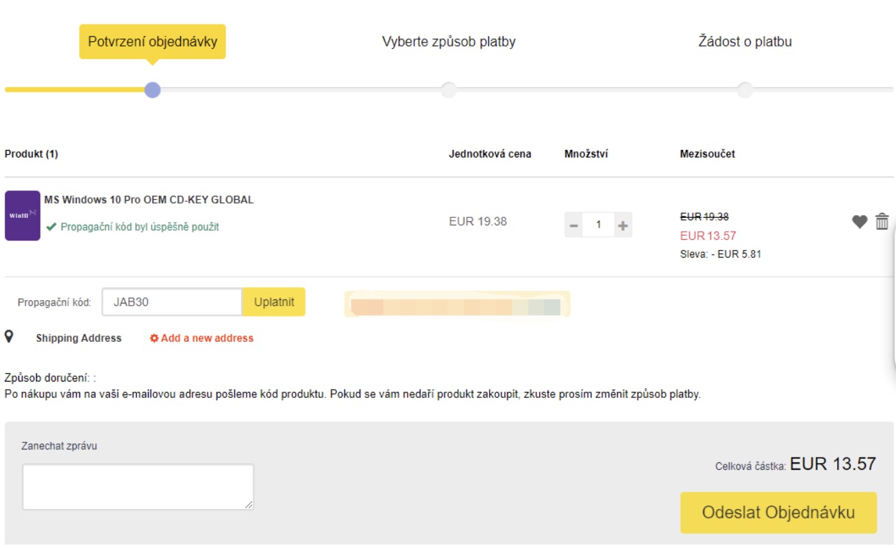 2. Do pole „Propagační kód“ vepište „JAB30“ pro dodatečnou slevu 30 % a následně dokončete standardním způsobem objednávku