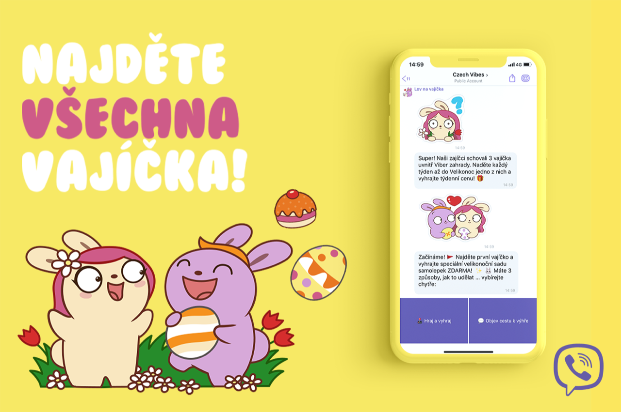 Tisková zpráva: Viber, jedna z nejpopulárnějších komunikačních aplikací na světě, vám přináší zábavnou velikonoční hru. Hledejte vajíčka, která schovali zajíčci a vyhrajte naše velikonoční ceny! Stačí zdarma si stáhnout sadu velikonočních samolepek a automaticky se připojit k chatbotovi, kde hledání vajíček začíná. Hra o vajíčka vám umožní vyhrát další speciální rozšířenou sadu samolepek anebo si můžete zahrát jen tak pro zábavu.