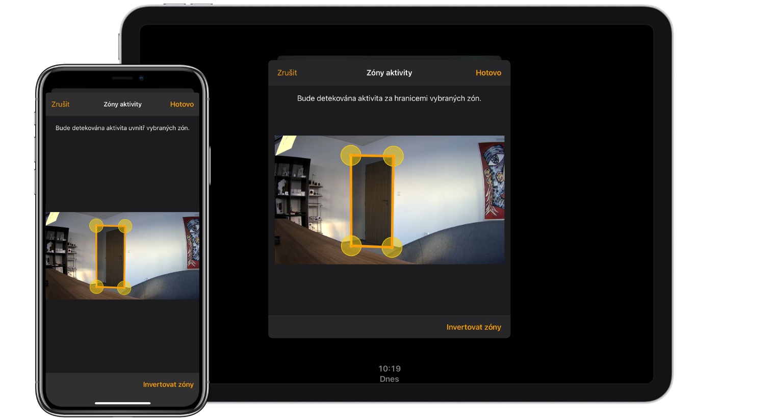 Praktickou funkcí je výběr zóny aktivity, tedy konkrétního ohraničení v zorném poli kamery, ve kterém bude HSV detekovat pohyb. Sami si zvolte jedno nebo více polí, které vás zajímají, a následně dostávejte upozornění pouze o pohybu v tomto úseku.