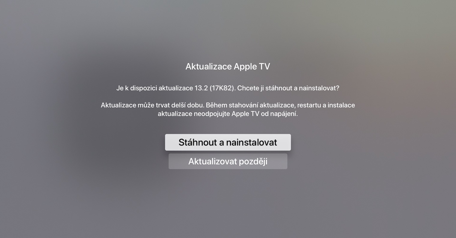 Nový iOS 13.2 a iPadOS 13.2 si můžete stáhnout v Nastavení –> Obecné –> Aktualizace softwaru. Update lze nainstalovat na zařízení kompatibilní s iOS 13, tedy na iPhone 6s a všechny novější (včetně iPhonu SE) a na iPod touch 7. generace. Aktualizovat na tvOS 13.2 můžete na Apple TV HD a Apple TV 4K v Nastavení –> Systém –> Aktualizace softwaru –> Aktualizovat software.