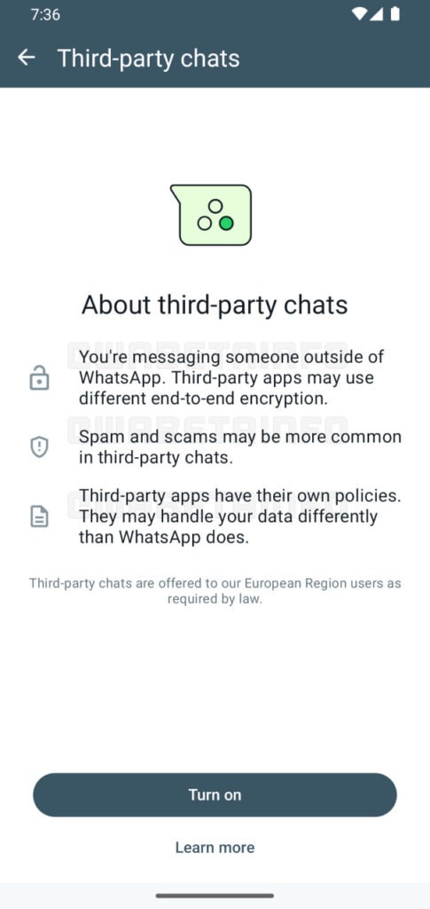 WhatsApp na funkci chatů třetích stran pracuje proto, aby vyhověl nové legislativě Evropské unie. Platforma v souvislosti s tím připravuje samostatnou sekci pro ně, kde tak uvidíte i ty ze sítí, jakými jsou Signal, Telegram atd., přičemž na ně budete moci také reagovat (budete-li chtít). I když v interoperabilních systémech pro zasílání zpráv musí být zachováno koncové šifrování, aplikace třetích stran mohou používat šifrování jiné. V důsledku toho budou chaty třetích stran uvedeny v jiné složce doručené pošty a uživatelům poskytnou univerzálnější možnosti komunikace.