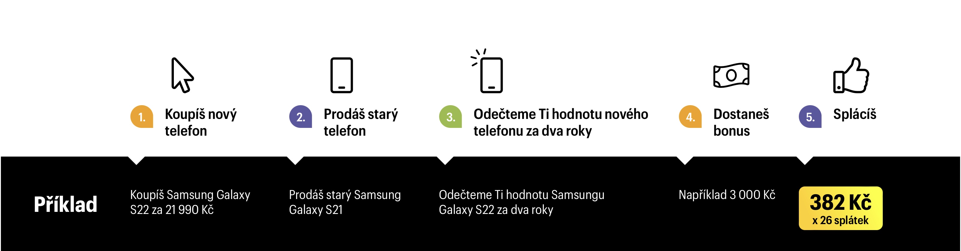 Pokud se například rozhodnete upgradovat z iPhonu 12 Pro na iPhone 13 Pro vyjde vás nový telefon po započítání všech zvýhodnění na pouhých 490 Kč měsíčně. Po celou dobu splácení jste přitom vlastníky telefonu a po uplynutí 26 měsíců můžete buďto pokračovat ve splácení nebo přejít na zcela nový model a opět tak využít výhod služby. Prodat přitom nemusíte jen svůj stávající smartphone, ale klidně také starý tablet, chytré hodinky, notebook nebo třeba i herní konzoli. Jednoduše na odkazu níže zadejte zařízení, které aktuálně vlastníte a zjistěte si svou cenu.