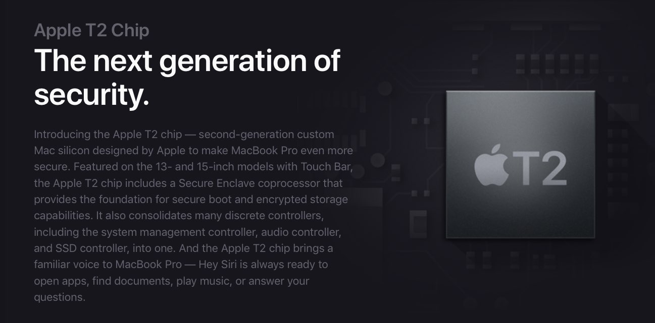 Bezpečnostní čip T2, který Apple implementoval do svých nově ohlášených, a od včerejška také dostupných Maců, se stará o opravdu velké množství věcí. Kromě toho, že má na starosti fungování a komunikaci Touch ID se zbytkem systému, slouží dále jako řadič SSD disku či jako TPM modul. Mimo jiné zajišťuje také to, aby se do fungování Macu nezapojoval žádný řádek kódu, který tam nemá co dělat. A právě kvůli této funkci není na nové Macy momentálně možné nainstalovat Linux.