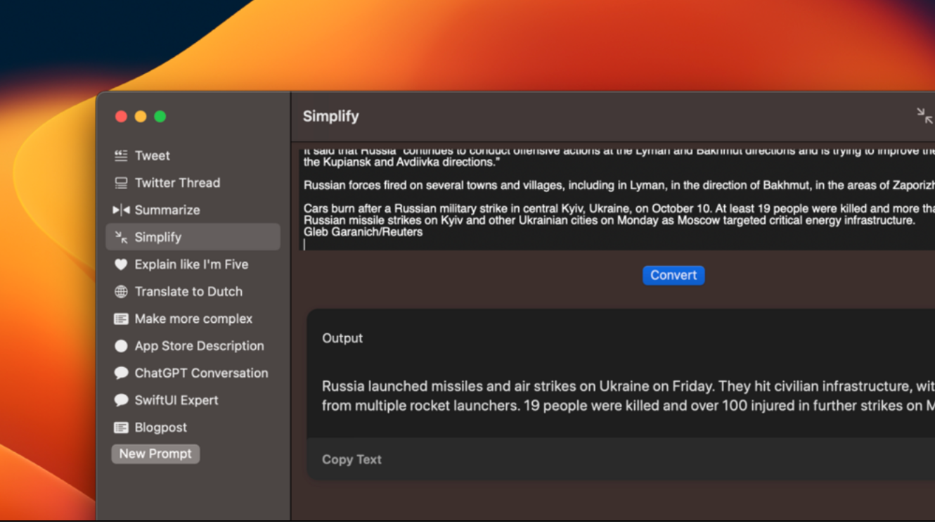 Aplikace Text Assistant využívá sílu umělé inteligence k vytváření užitečných textů pro různé účely. Pomocí nástroje Text Assistant můžete snadno vytvářet vlastní zadání a rychle k nim přistupovat, abyste ze zadání vytvořili konkrétní, cílený výstup. Ať už potřebujete napsat obchodní sdělení, příspěvek na blog nebo dopis milované osobě, Text Assistant vám pomůže.