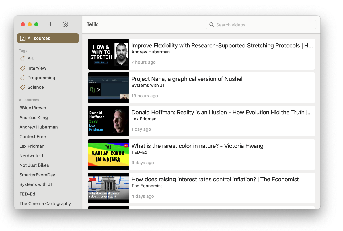 Sledujete YouTube a vytvořili jste si na této platformě vlastní playlisty? Pak možná oceníte aplikaci s názvem Telik. S aplikací Telik můžete sledovat, spravovat a označovat YouTube kanály i vytvořené playlisty, aplikace také nabízí podporu klávesových zkratek nebo třeba možnost importu i exportu dat.