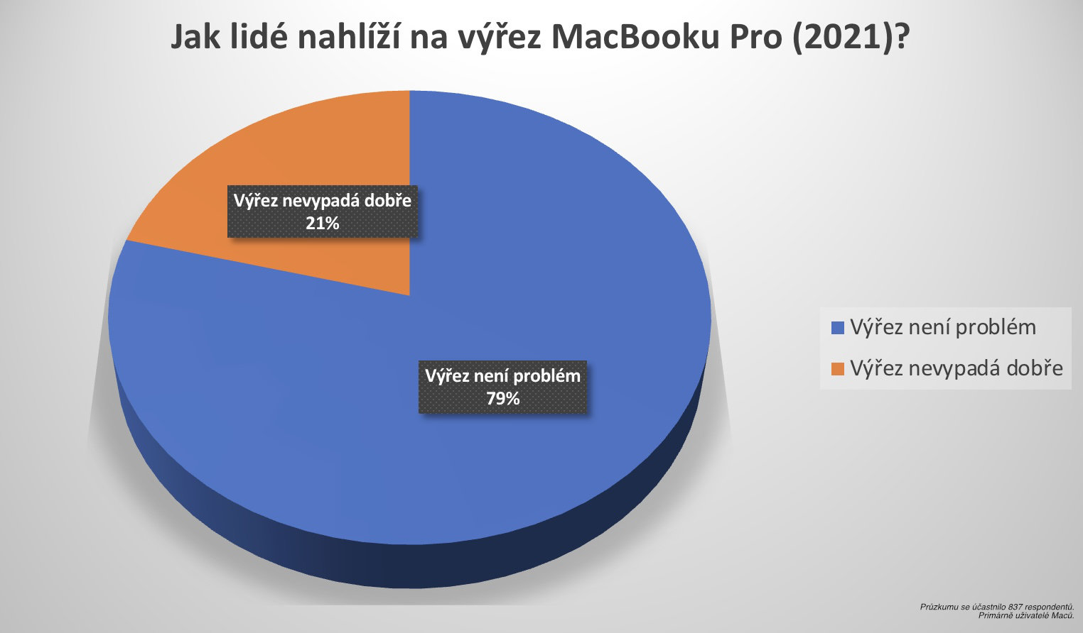 Samozřejmě podle reakcí na sociálních sítích bychom mohli jednoznačně říct, že je horní výřez u loňských MacBooků Pro naprostým propadákem. V reakcích (nejen) jablíčkářů jde vidět jejich zklamání a nespokojenost, na což rádi poukazují především na diskuzních fórech. Co když je tomu ale úplně jinak? Je totiž zcela běžné, že když někomu něco nevadí, tak se nemá potřebu ozývat, zatímco druhá strana dá velice ráda najevo svou nespokojenost. A jak to tak vypadá, to samé se děje i v případě onoho notche. V komunitě Mac uživatelů (r/mac) na sociální síti Reddit se totiž odehrál průzkum, který pokládal přesně tuto otázku. Obecně se tak zaměřil na to, zdali respondentům (z řad uživatelů Maců i ostatních) vadí výřez, nebo nikoliv.