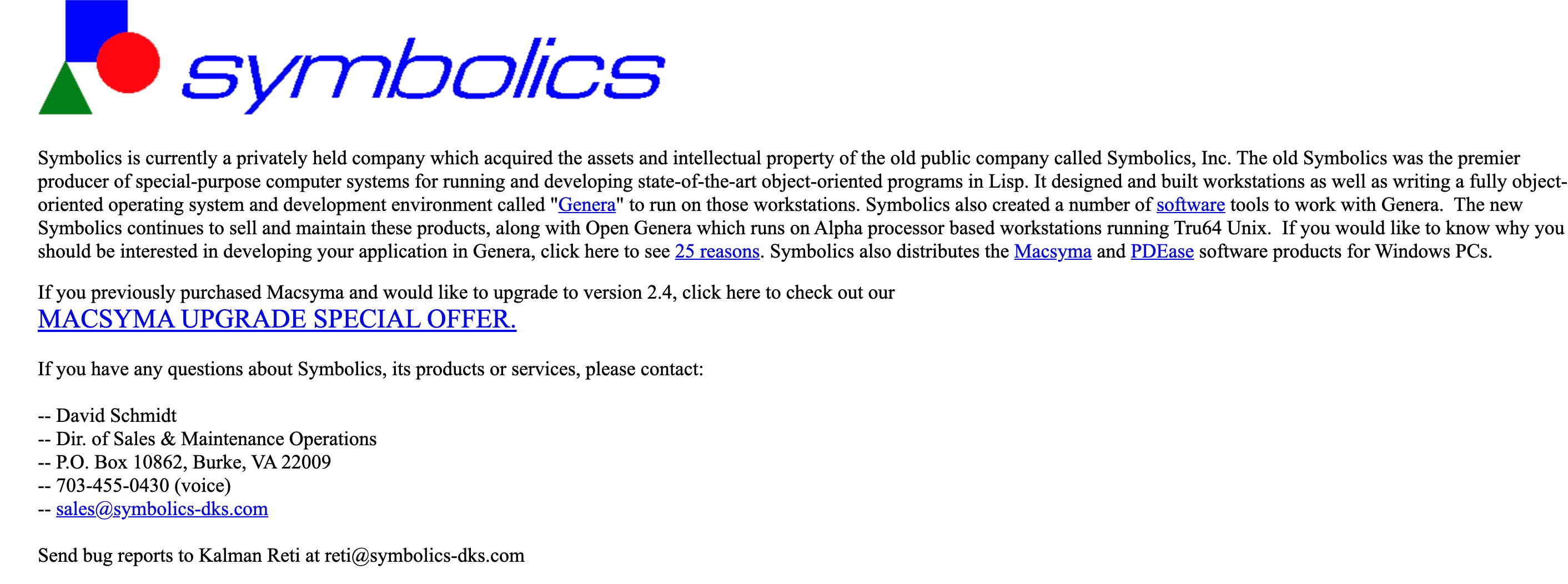 Massachusettská počítačová společnost Symbolics si 15. března roku 1985 nechala registrovat vlastní doménu s názvem symbolics.com. Jednalo se zároveň o historicky první registrovanou internetovou doménu s koncovkou .com. Zmíněnou doménu v současné chvíli vlastní investiční společnost, která ji využívá především k marketingovým účelům. Pozůstatky informací o společnosti Symbolics můžete dodnes nalézt na stránce symbolics-dks.com.